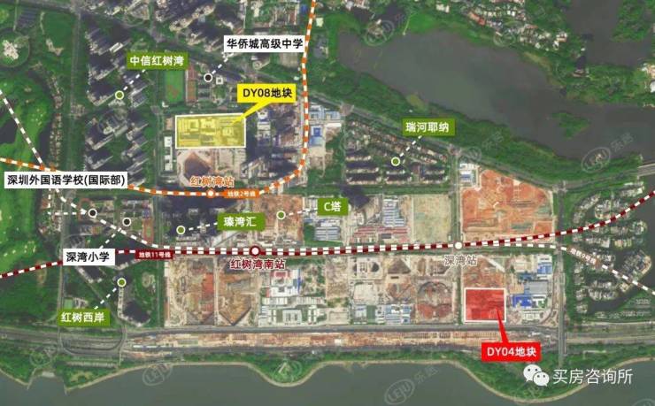 地块被白石二道、深湾一路、深湾二路围绕,北侧是华侨城高级中学,南侧是深铁万科臻湾汇,西面是中信红树湾,东面是TCL、神州数码等总部大厦。