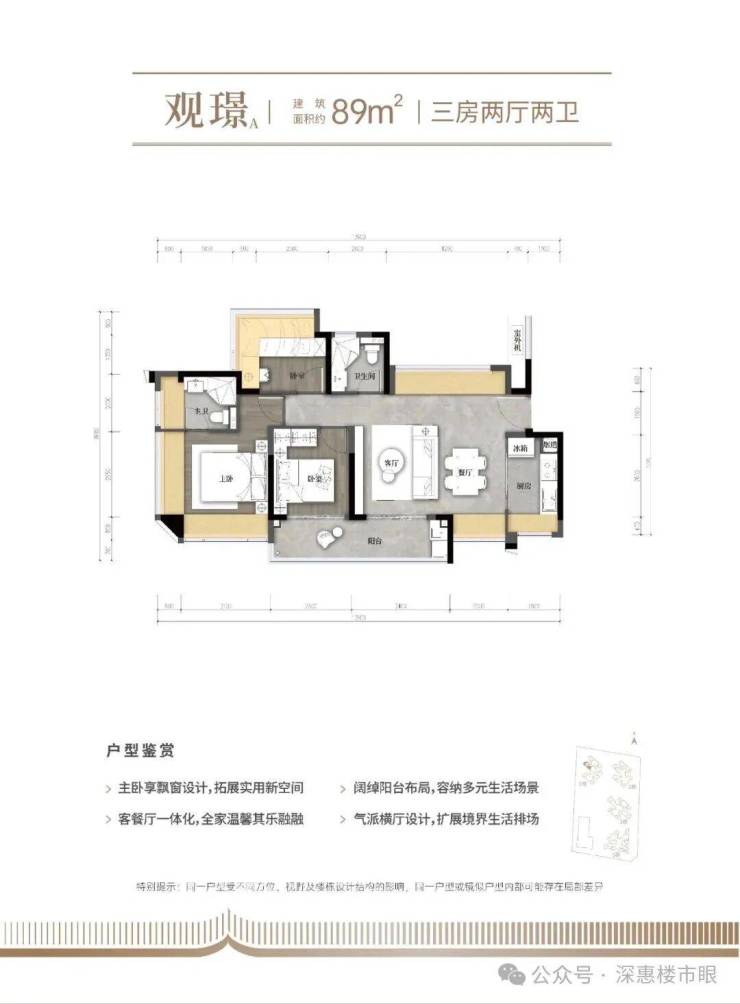 89m²的3房2厅2卫,折后总价354-371万/套,单价4.01-4.22万/m²。仅剩7套。