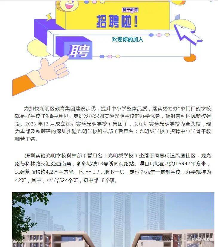 学校配套:观玥名邸自带1所6班制幼儿园,项目旁规划在建深圳实验光明学校(集团)科林部(暂用名:光明城学校),总建筑面积约4.2万㎡,该校是1所九年制公办学校,办学规模为36班,将提供1680个学位,其中小学部24班/1080个学位,初中部12班/600个学位。