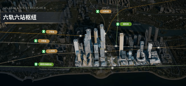 “建立高铁枢纽和预留港深海底通道接口,以实现更快速的隧道连接与更便捷的海路联系,至亚洲金融中心只需15分钟,至香港国际机场、宝安国际机场只需20分钟,使深圳湾超级总部无缝对接全球资源及全球基础设施!”