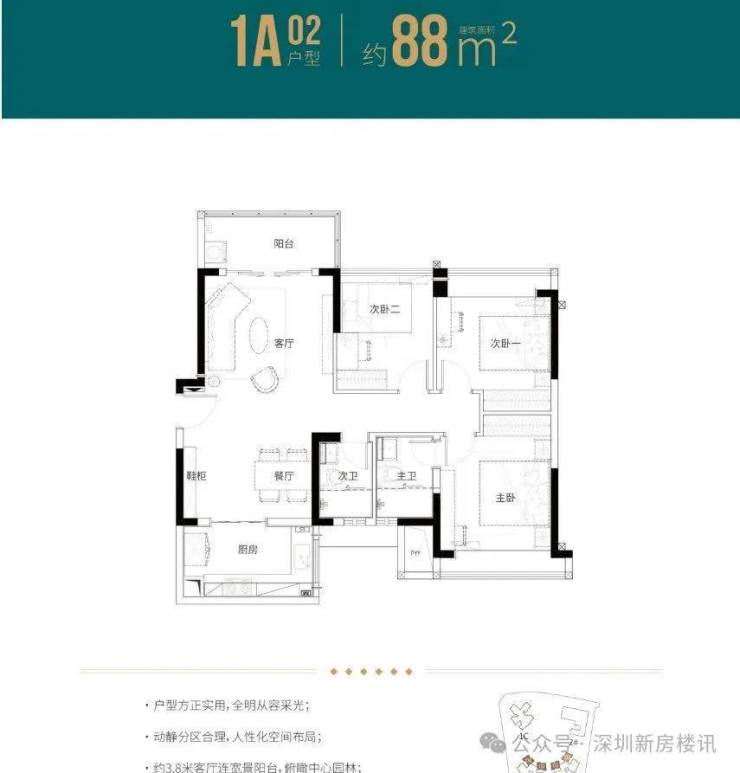 88㎡的3房2厅2卫,折后总价311-393万/套,单价3.5-4.46万/㎡。