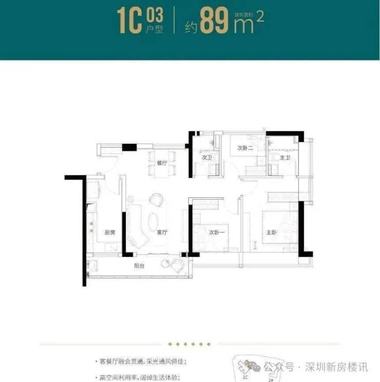 89㎡的3房2厅2卫,折后总价317-345万/套,单价3.56-3.87万/㎡。