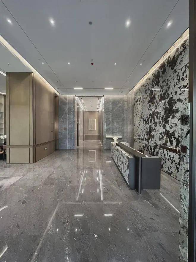 宏发做的房子品质素来比较在线,项目入户大堂以精奢酒店风为主,采用大面积的透光玻璃和石材,实地看档次不错。