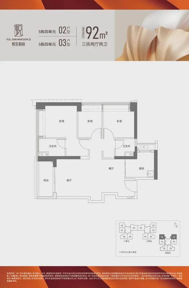 【产品面积】建面约92-129m²3-4房