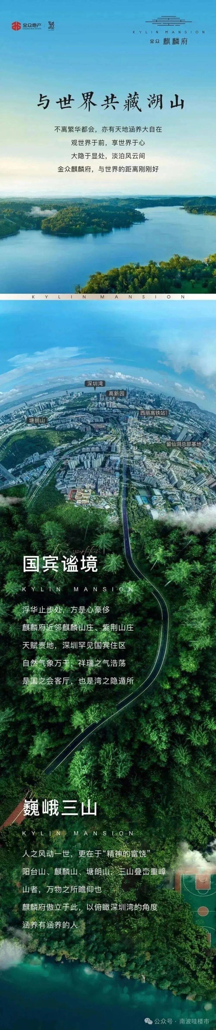 金众麒麟府,择址国宾馆麒麟山庄旁,于西丽湖山大境之上,私享国宾级尊崇礼遇。麒麟山庄,深圳第一国宾馆,占据深圳市中芯景观环境最好的西丽湖片区,深圳最高规格的接待地,深圳市委、市政府接待贵宾最高规格首选之地。