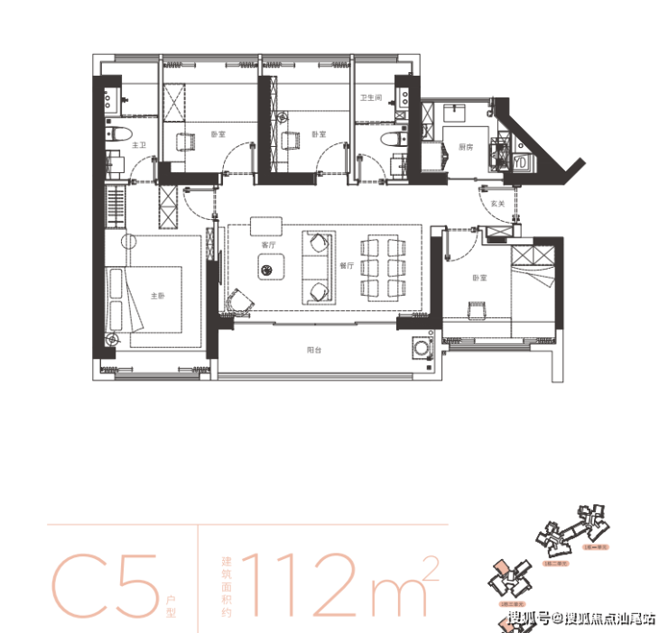 家政阳台定位,6人位餐厅满足多人就餐,主卧独立卫生间