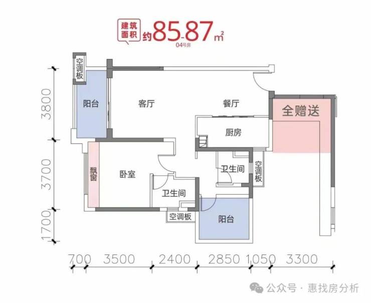 🏠87㎡户型🚀三房两厅两卫75万起