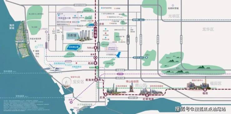 紧邻11号线沙井站约700米,5站到机场,7站通宝安中心(从马安山出发),快速通达前海湾、后海总部基地、深湾总部基地、福田中心。