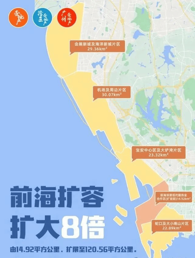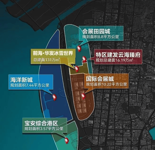 前海作区扩大到约120.56平方公里,会展新城及海洋新城片区凭借双核规划优势,总投资超千亿元将直接撬动连通前海万亿规模经济带,将成为粤港澳大湾区新的经济增长极。