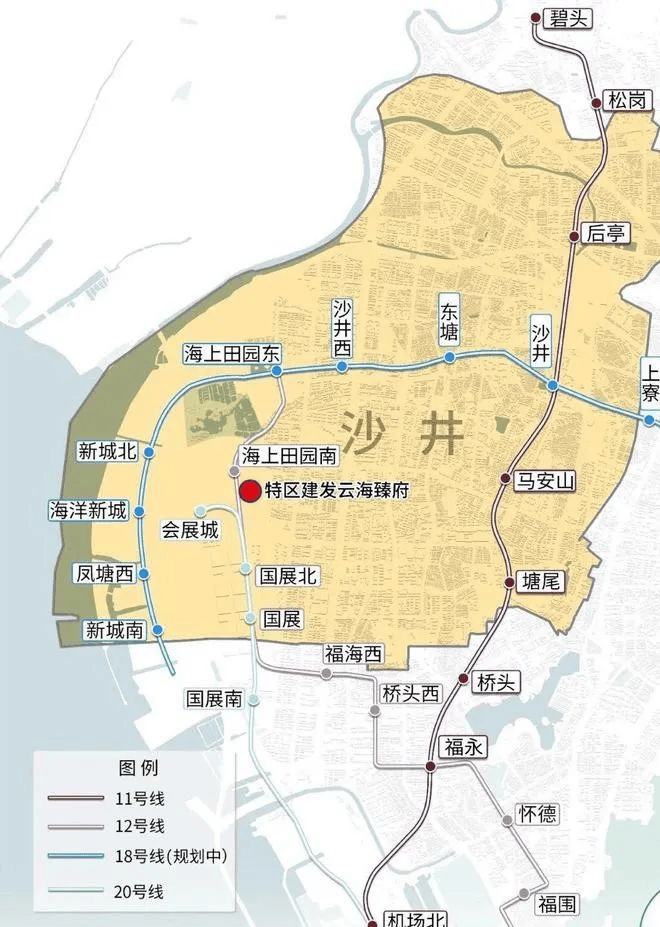 轨:4大地铁线。12号线+20号线双地铁口,11号线和18号线(规划),直达大前海、宝中、南山科技园、福田中心。