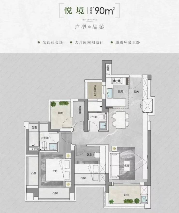 产品方面,中海云启源境打造约90-143㎡新规三、四房,使用率较高。