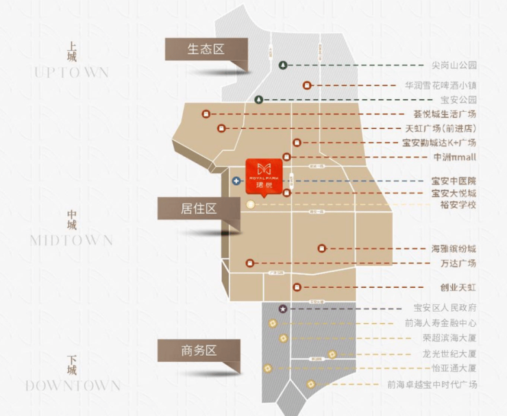 珺悦ROYAL PARK位于湾区商务大道黄金轴点上,占据宜居地段,约3KM生活半径集萃全维超配资源,享繁华生活配套