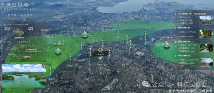 坐拥塘朗山、银湖山两大山脉的自然资源,近享民治水库、民乐水库、雅宝水库、南坑水库四大湖景,超核“未来之眸”绿芯公园、民治体育公园、红木山郊野公园等九大生态公园环伺,深圳城芯难得森态胜景,满目盛景尽斑斓。