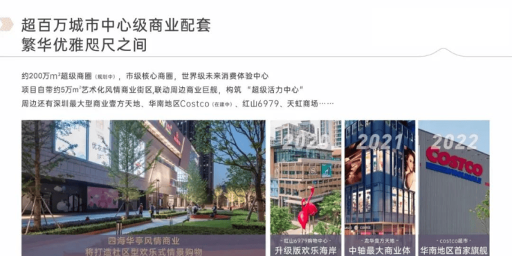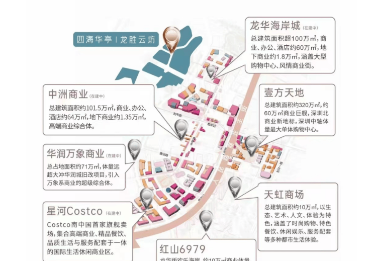 周边深圳最大型商业壹方天地、华南地区Costco(在建中)、红山6979、天虹商场等