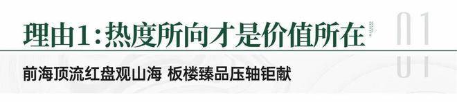 TOP级前海山境奢居:仅约2.66超低密板楼,屹立前海繁境,环拥一线大南山,从尺度、舒适度、格局、景观多维重塑奢居想象,以超越价格的豪宅级品质力,序新前海山居的奢宅标杆。