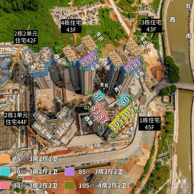 这次要推售的地块是金光华溪山禾玺御府,总占地面积约1.77万㎡,容积率6,绿化率40%,共由5栋总高42-45层的住宅组成,其中1栋住宅45层,3/4栋住宅43层,总规划有1200多户,规划停车位1400多个,车位比超1:1.6。
