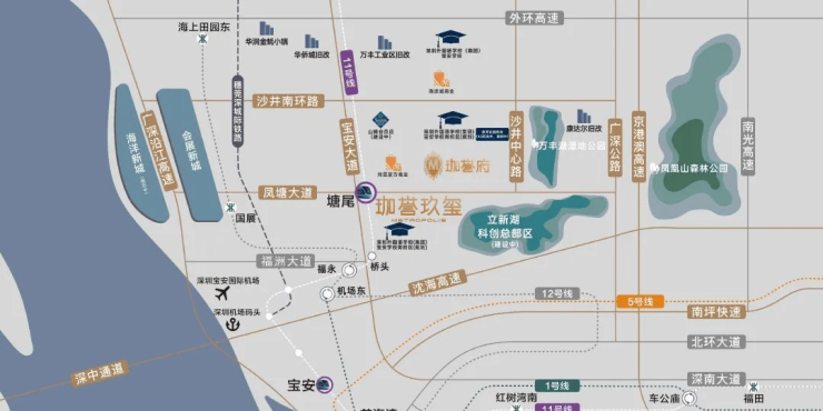 沙井不仅位于粤港澳大湾区发展轴心,更是国家重大战略所在地,前海扩容受益者。是深圳市空港新城的主要辐射和服务区,也是广深科技走廊的关键节点。随着大航空新城的建设,拥有海、陆、空、轨4维立体交通网络的沙井,将成为深圳西部的中心城区。