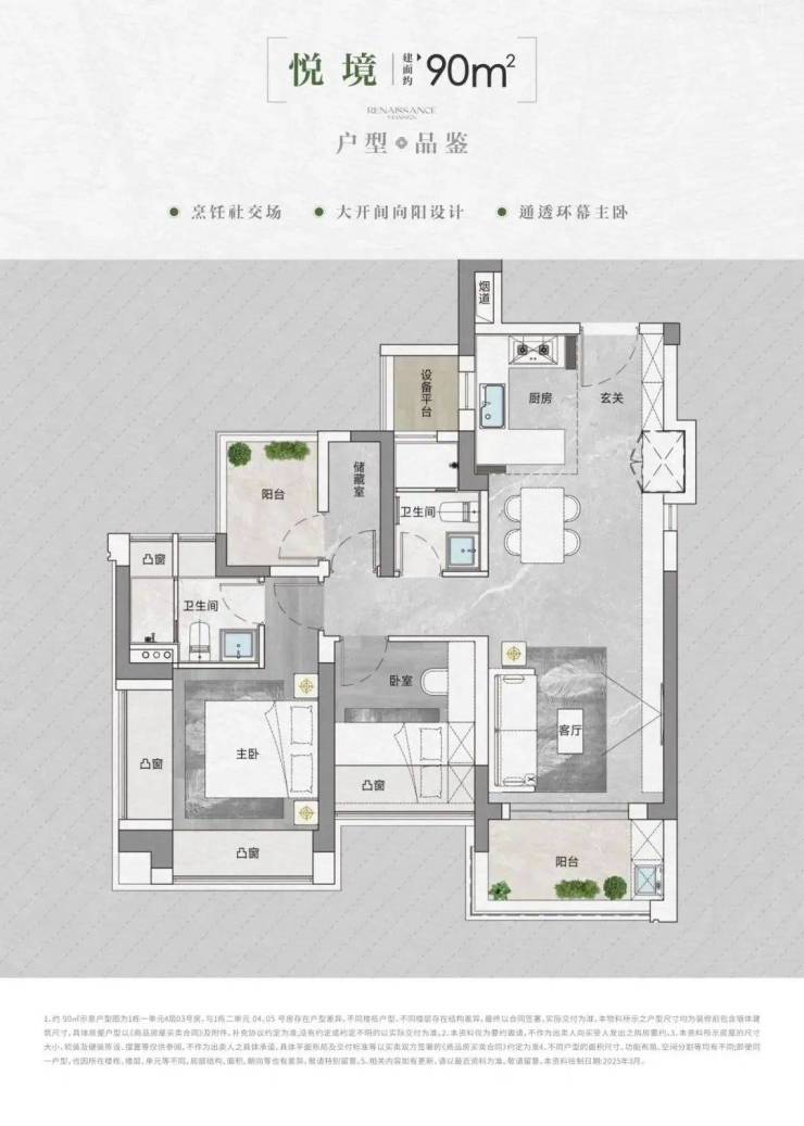 • 得房率:通过创新性的飘窗、双阳台改造、设备平台赠送等设计,实现平均94-96%的惊人得房率。
