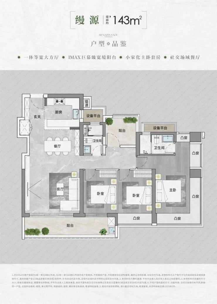 面积与户型:推售房源涵盖建面约90-95-105-143㎡的3-4房,共298套可售房源。其中,95/105㎡三房户型以朝东为主;90㎡三房户型朝西;143㎡四房大户型东南朝向。