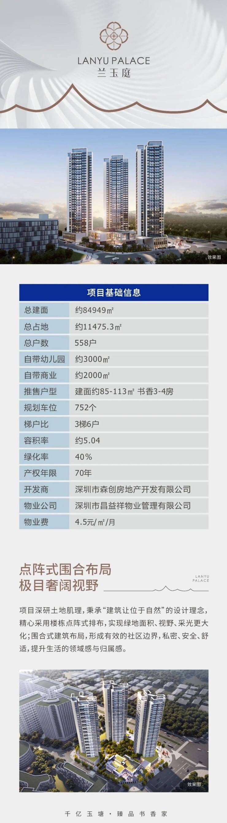 深圳 兰玉庭楼盘详情介绍,包含售楼处电话、地址、户型图、小区图片、区位优势、交通、周边商业配套等楼盘详细资料;更详细楼盘资料和最新折扣价格,请拨打售楼处电话,销售会为您详细介绍楼盘。