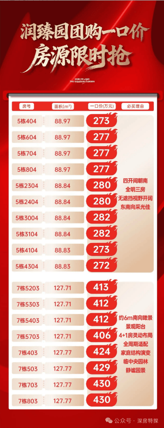 最新消息:润臻园3月狂卖近120套,现继续加推5栋89和128㎡工抵房,本次加推视野更加开阔。89㎡总价272万起,128㎡总价405万起,本次89㎡总价叠加内部优惠完约26X万起就可以拿下三房两卫,四房39X万即可拿下128㎡大四房(扫码预约还可以享受大额媒体返惠)优质性价比的楼层一定要抢!扫码提前预约参观!