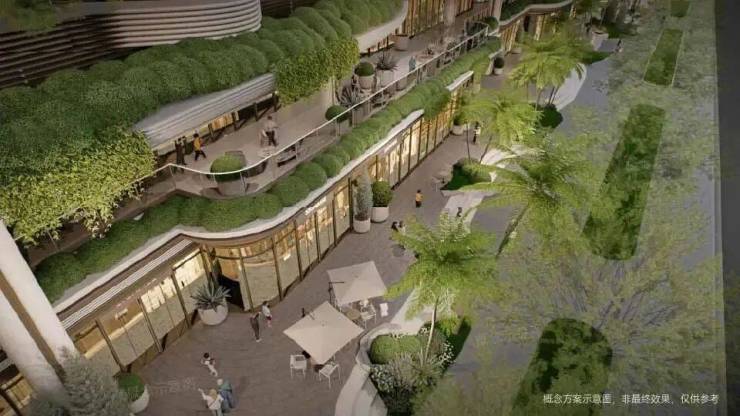 约5.5万㎡的三层立体园林,还有约0.55万㎡的会所(棋牌、健身、宴会、Party House等功能)、室内篮球场、室内网球场、室内恒温泳池和约1.83万㎡街区式商业(体量跟东京麻布台之丘相近),预计由华润万象生活招商的。