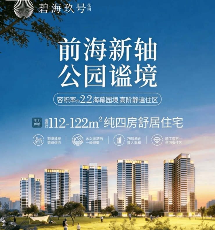约165-185㎡四房(专梯入户):面向高阶改善客群,提供更强的私密性、更开阔的视野及更纯粹的圈层氛围。是碧海改善的“天花板”产品