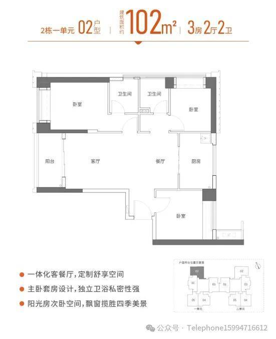 102㎡三房两卫:南北通透-稀缺通风开阔