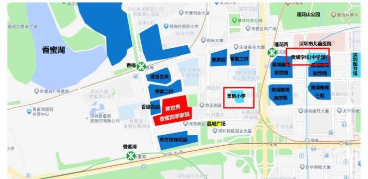 在教育配套方面,项目自带一所约3000㎡的9班制幼儿园,右侧是一所在建中的36班福田区人民小学,预计今年投入使用。根据24年学区划分,项目对应书包为福田景鹏小学、福田区荔园外国语小学(景田校区)和福田黄埔学校初中部。