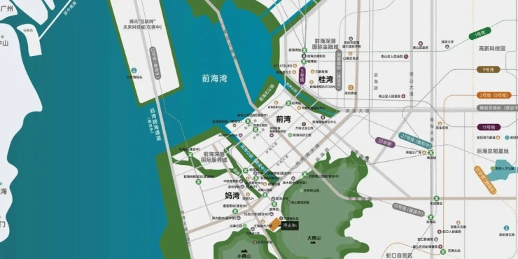 与【桂湾】国际金融城和【妈湾】深港国际服务城两大前海核心区引擎