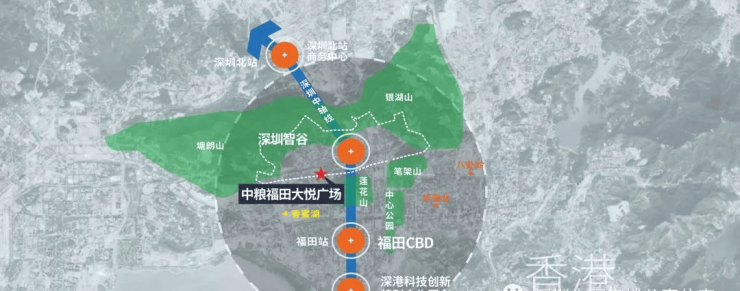 ⭕“深圳智谷”芯核迭代中轴商务格局-------‐----‐----------------------------深圳中央活力区、智能科技产业带、总部经济轴,三重战略赋能,“深圳智谷”应势而生。中粮 · 福田大悦广场择址于此,坐享超300万㎡城市更新红利,改写湾区商务芯格局。