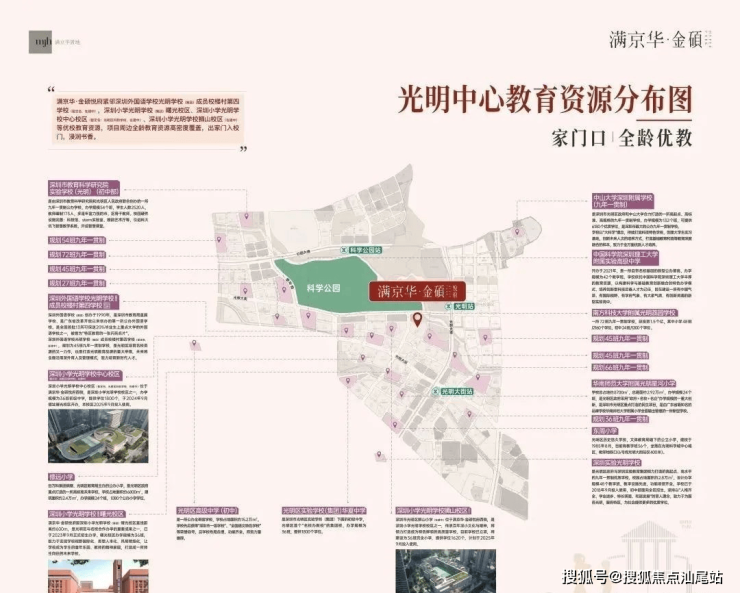 满京华·金硕项目直面占地约208万㎡的科学公园(在建中),近享深圳国际美术馆(暂定名、在建中)、深圳科学技术馆、科学城体育中心(在建中)、会议中心(规划中)等市政级文体配套;还坐拥狮山公园(规划中)、约9.4万㎡的东周文化公园,约10万㎡的开明公园,约56万㎡的新城公园等丰富绿色生态资源。