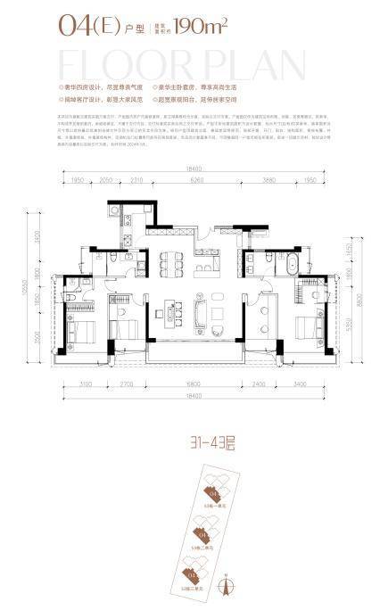 约190㎡户型南北通透,户户带270°采光阳台。双套房+独立入户玄关设计搭配宽景大阳台及高使用率,居住舒适度拉满。