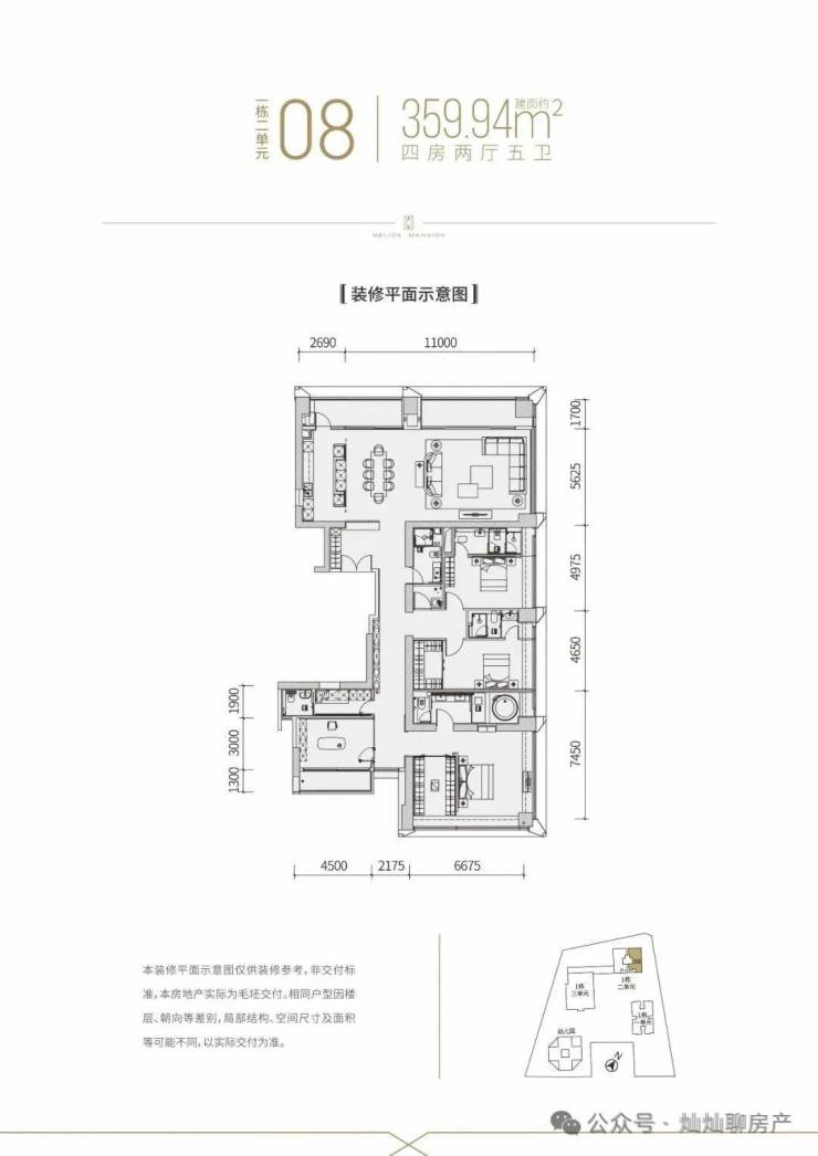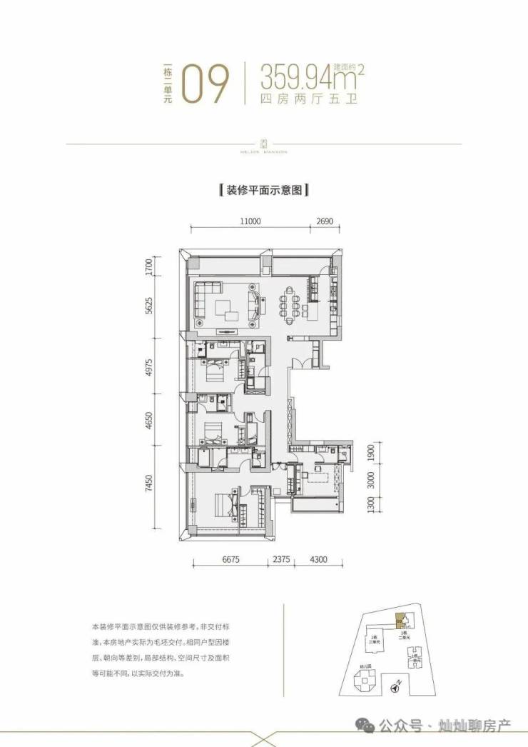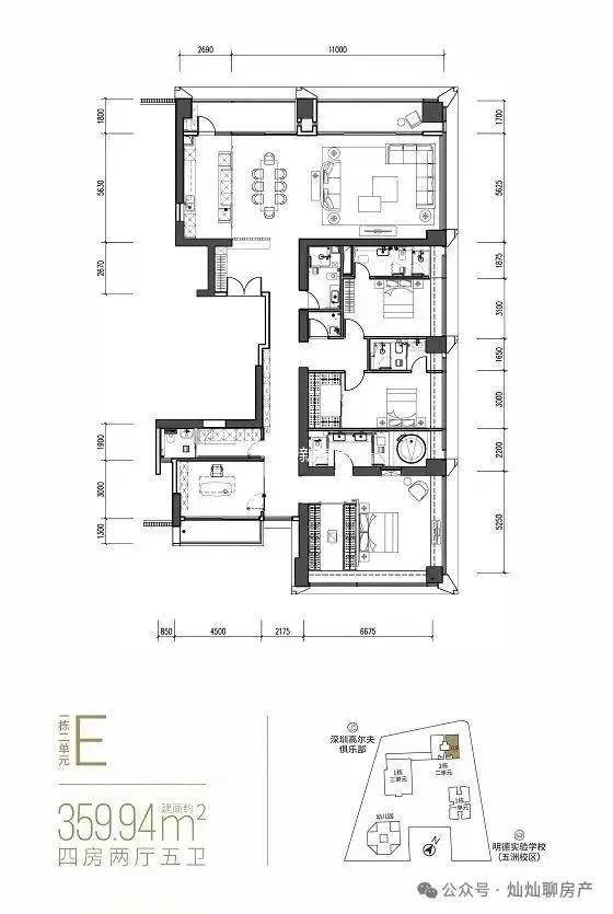 360㎡大平层:五房五卫、中西双厨,45层以上私梯入户,定位顶豪。