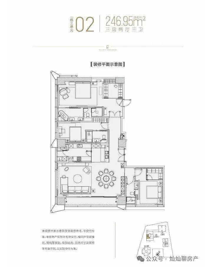 1栋三单元是酒店+商务公寓,22层以上为商务公寓,主力户型246-338㎡,均价约为9万元/㎡。