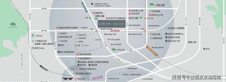 •百年高峰学校(龙华区公立四大、十大录取率排名前三)、龙华中学弘毅校区(广东省一级)、龙华中学中心校区(广东省一级)、龙华第三小学(公办32班小学)、项目配建幼儿园等