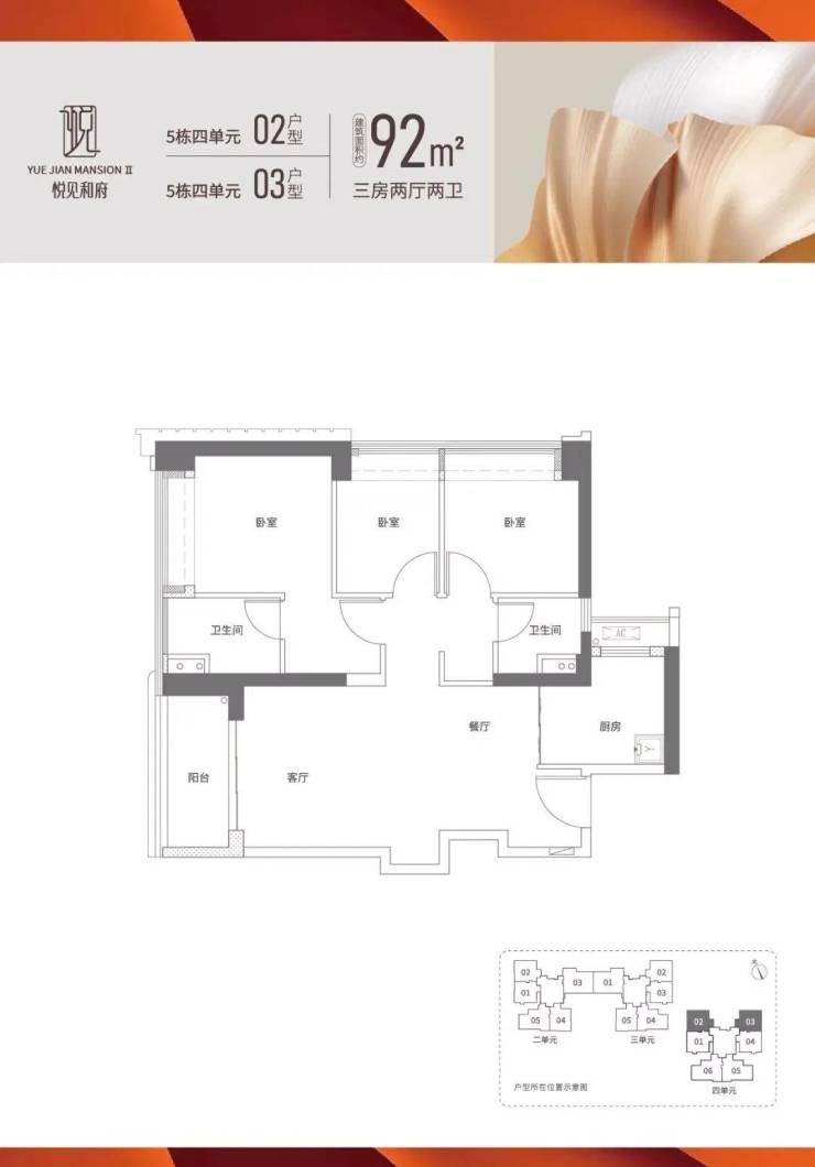 【产品面积】建面约92-129m²3-4房