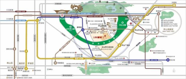 ·家门口三地铁环绕:14/16/19号线(在建),坪山广场站、新和站、坪山剧院站(在建)三站环绕,快线6站到大运、13站直达岗厦北,便捷换乘畅达各区核心;