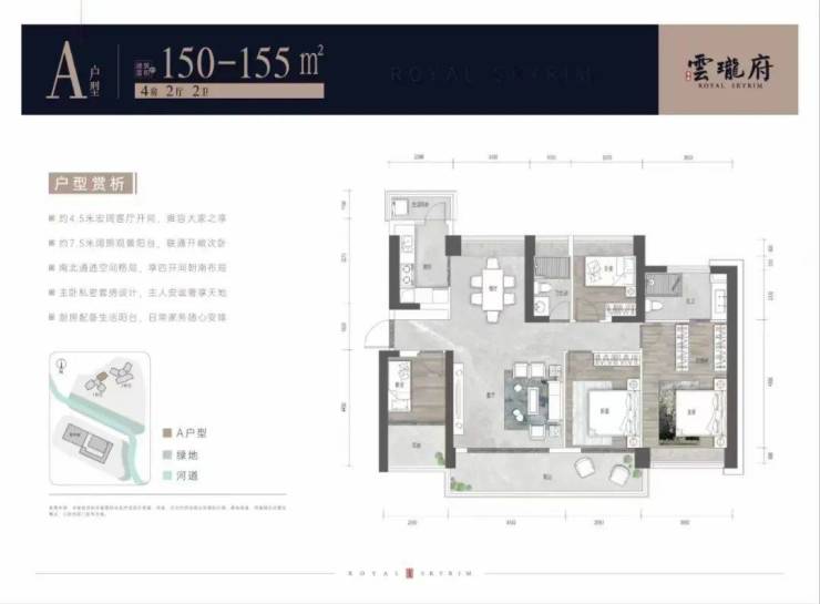 本次推出建面约123-155㎡纯四房,一共有5个户型;
