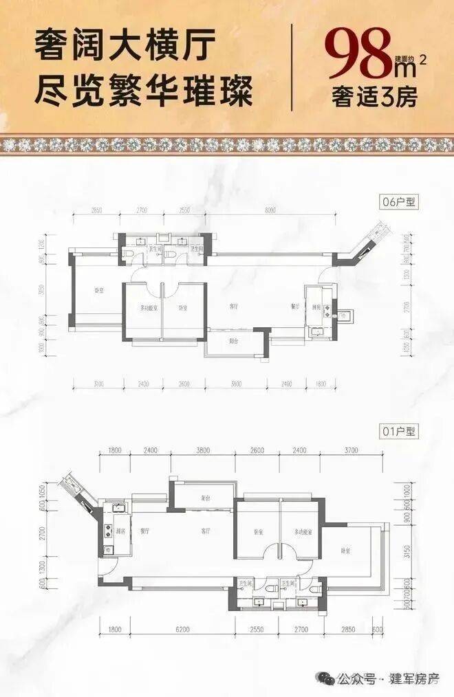 98㎡的3房2厅2卫,设计的是横厅南北通透格局,进门入户玄关,客餐厅6.2米开间,LDKB一体化,分别做到了主卧15.27㎡/次卧8.58㎡/次卧7.92㎡(包含墙体飘窗),L型厨房,卫生间干湿分离,得房率约74%(不含赠送),阳台主朝东南或西北向约6.27平。套内面积72.62㎡+赠送面积19.48㎡=实得面积92.1㎡,加上赠送后得房率约93.85%。