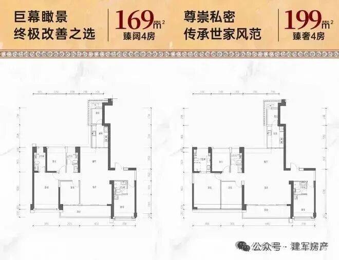 169㎡的4房2厅3卫,设计的是竖厅格局,2梯2户,专梯入户,独立入户玄关,客厅4.65米开间,LDKB一体化设计,四开间朝南,双主卧套间,分别做到了主卧18.98㎡/套间12㎡/次卧9.35㎡/次卧9.04㎡(包含墙体飘窗),客厅连接次卧出7.47米长的大阳台,看花园全貌景观,二字型厨房带1个生活阳台,公卫三段式分离,得房率68.58%(不含赠送),正南朝向。