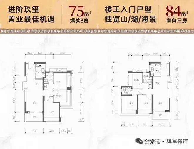84㎡的3房2厅2卫,设计的是经典竖厅格局,客厅3.2米开间,LDKB一体化,S墙设计预留冰箱卡槽位,三开间朝南,动静分区,分别做到了主卧13.27㎡/次卧9.18㎡/次卧7.02㎡(包含墙体飘窗),U型厨房,公卫三段式干湿分离,得房率77.3%(不含赠送),东南或西南朝向。套内面积65.1㎡+赠送面积9.17㎡=实得面积74.27㎡,加上赠送后得房率88.19%。
