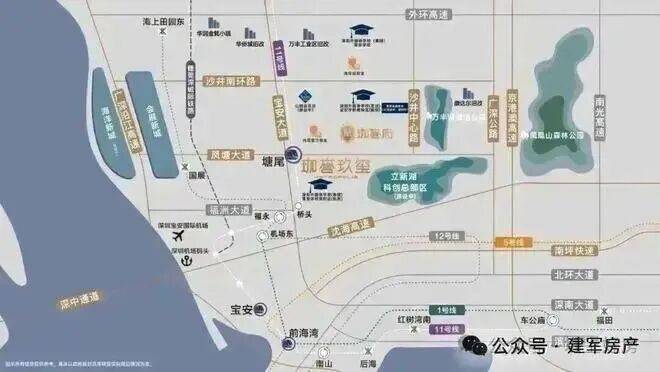 交通配套:步行可达的是地铁11号线塘尾站,衡量地铁配套的价值,不能只看通勤距离,还得考虑线路串联的城市资源,11号线沿途站点都是城市地标级的综合配套,可实现6站到宝中,7站到前海,9站到深圳湾后海,11站到车公庙的快速轨道通行,可以说是“全城精华,一轨直达”。