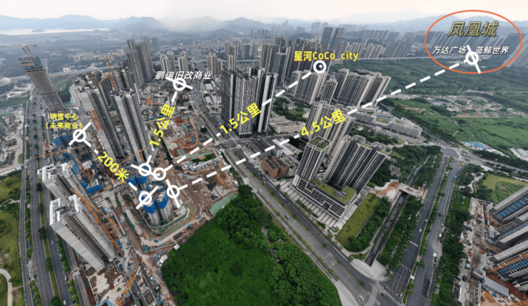 商业配套:项目目前来看商业比较匮乏,入住以后估计更多的依靠楼下底商来,不过好在周边的商业正在完善当中,目前所在的营销中心未来将改为商业,周边还有在建设的星河CoCo city,距离楼盘1.5—2公里左右。距离凤凰城的蓝鲸世界,万达广场在4.5公里左右。