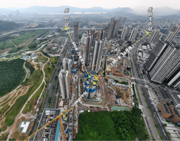 【地址】:深圳·光明中心·光辉大道与狮山三街交汇处·6号线光明站D出口约800m【总占地面积】:约11万㎡