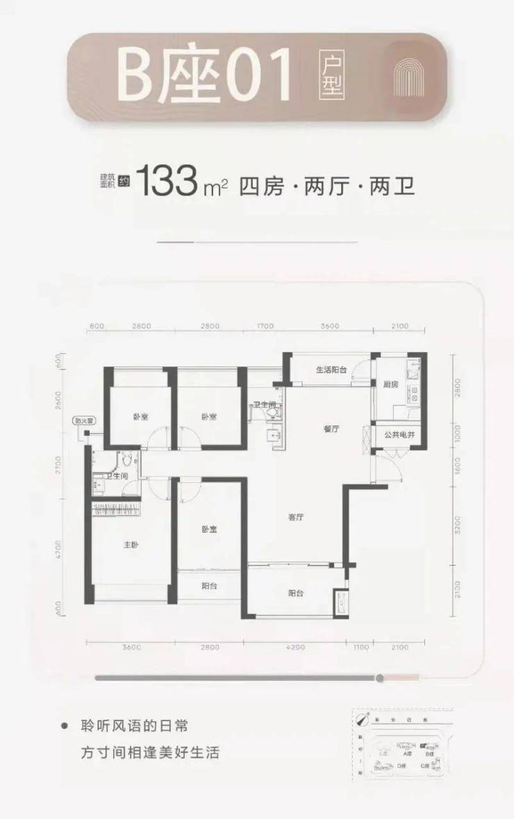 【梯户比】A~B-C座2梯4户,D座2梯5户, D座可售楼层为3-13层;