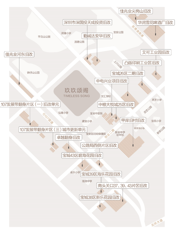 区域内目前正进行着大规模的旧改,旧改体量超过1000万平米,其中超过400万平米的城市综合体,100万平的商业,项目2km内汇聚8个旧改,焕新片区人居生活,过去5年新安片区房价涨幅高达111%,跑赢了宝中、前海、后海等热点片区,新安的房价天花板远不止如此,前景十分可期。