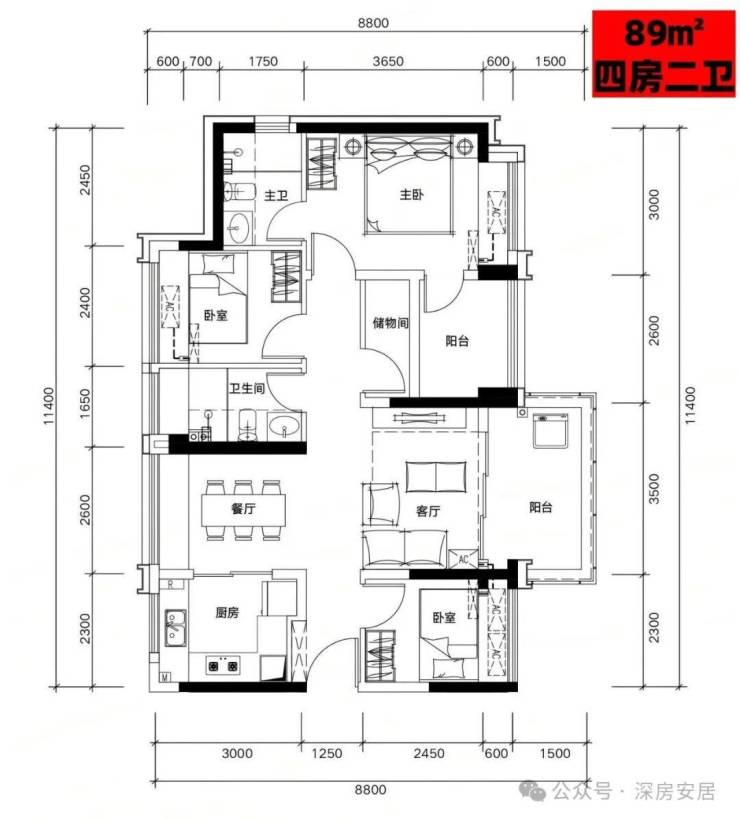 81平做三房已经很牛了,没想到还有更厉害的,松茂御城81平居然做四房!