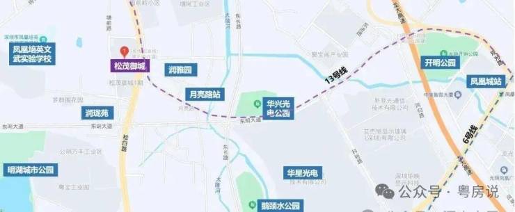目前距离在建的13号地铁线“月亮路站”约400米,3站到光明城站,5站到石岩上屋站,计划在2025年通车运营。