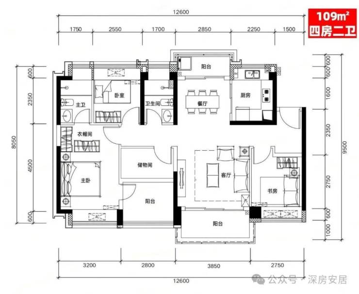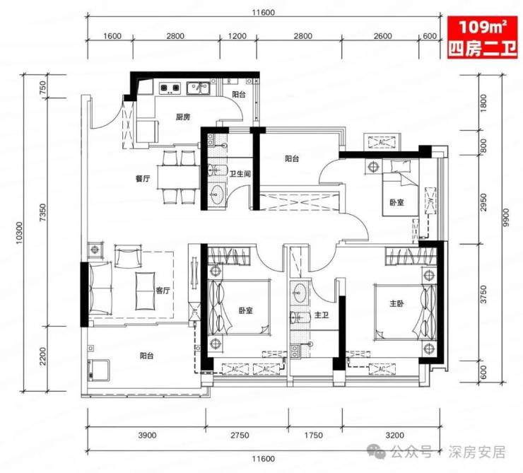 B03户型:109㎡四房二厅二卫